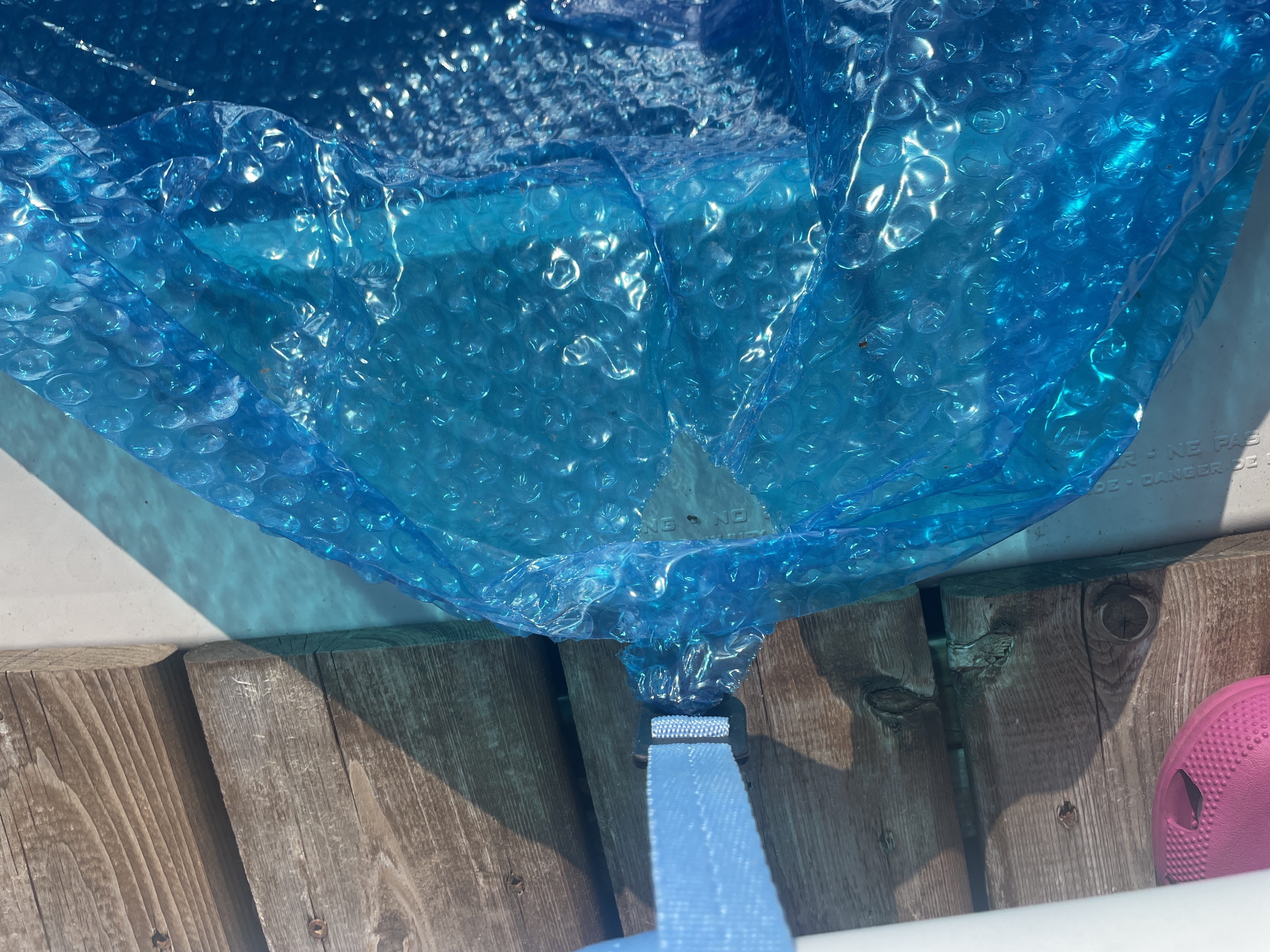 Replaced my 5+ year old solar cover with this and brand new it hardly floats. 3/4 of the cover is submerged by a few inches of water at any given time. Old worn out cover floats better than this. Will not buy again.