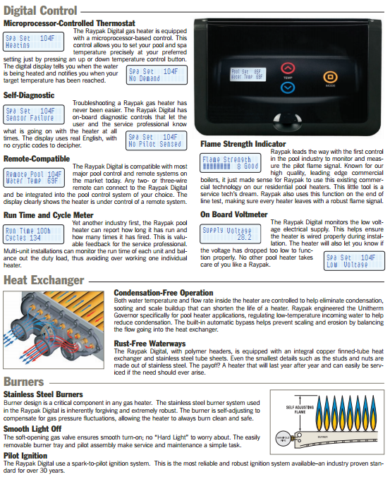 Your pool and spa is a long-term investment that you, your family and friends will enjoy year after year. Now, there's an easier way to enjoy that investment more often, more reliably and more efficiently throughout the year...the Raypak pool and spa heater.