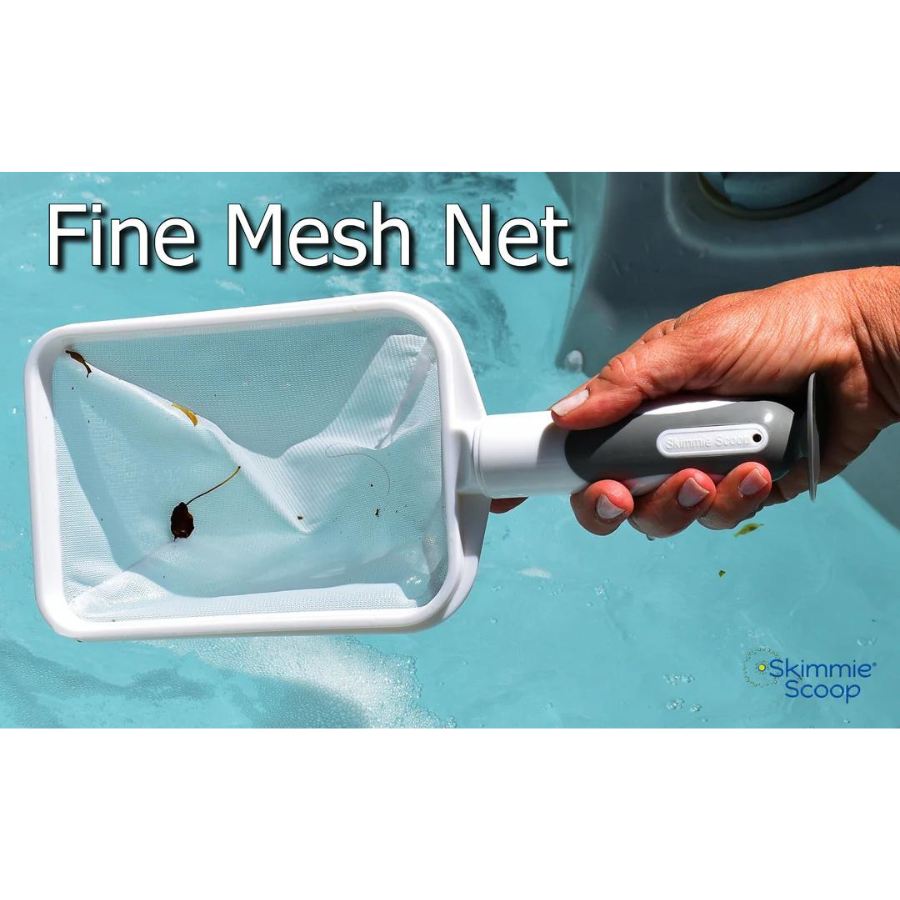 - Must-Have Tool: The Skimmie Scoop high density fine mesh net spa skimmer is a smart choice in achieving a cleaner, safer and more enjoyable spa experience. Skim the finest debris quick and conveniently.
