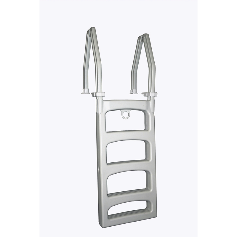 This in-pool step / ladder measures 24 inches in width, and is a full step entry to make for easy pool entry and climbing. This step includes two sets of deck mount flanges for greater stability, and is adjustable for use on pools between 46 and 60 inches tall. Step is white in colour.